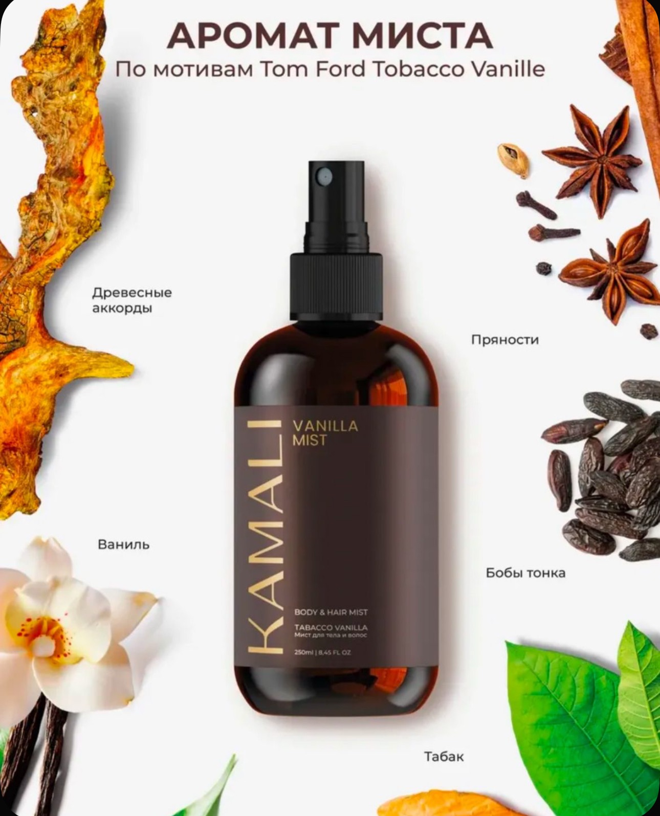 Камали мист для тела и волос Vanilla, 250мл – купить за 695 руб | foyo.ru